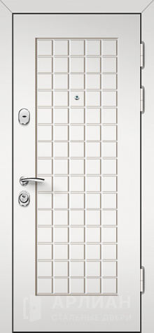 Входная белая дверь с отделкой "волна" с верхним и нижним замками №16