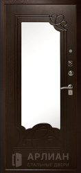 Белая входная дверь с зеркалом с повышенной звукоизоляцией и темной фурнитурой снаружи №21