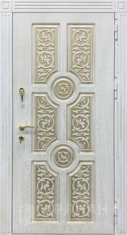 Белая дверь из толстого металла с декоративной вставкой №4