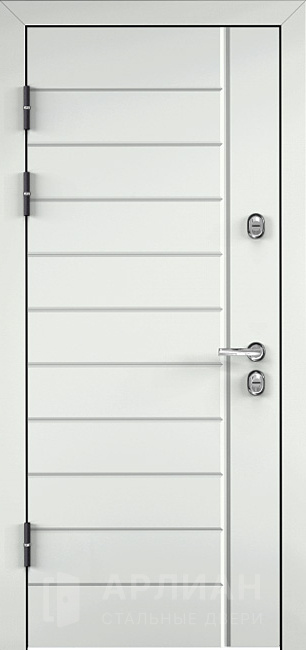 Белая матовая входная дверь с молдингом №23
