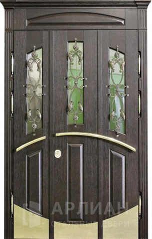 Утепленная входная дверь для коттеджа с кованными элементами №28